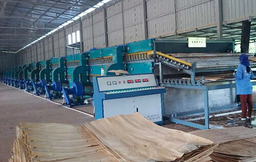 單板烘幹機采用科學的烘幹原理,用離心風機直接把熱風爐內的熱風注入機內的上下風箱中,熱風通過上下風箱的噴嘴吹到運行中木片的上下兩個網麵,從而起到烘幹的作用。刨切木片由進料口送入機內,由上下網帶夾持相對運行,通過上下噴嘴以達到烘幹效果。采用無極變速機根據您的木片幹度和含水率調整進料速度,以達到理想烘幹效果。